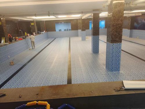 浙江室內(nèi)游泳池防水膠膜施工完畢,本項目為新建鋼結(jié)構(gòu)拼裝泳池,采用1.5mm顆粒防滑游泳池防水膠膜,安裝鋪設(shè)使用干鋪工藝,四周采用卡槽固定,整體形成密封結(jié)構(gòu),達(dá)到防水不漏水,效果如下: